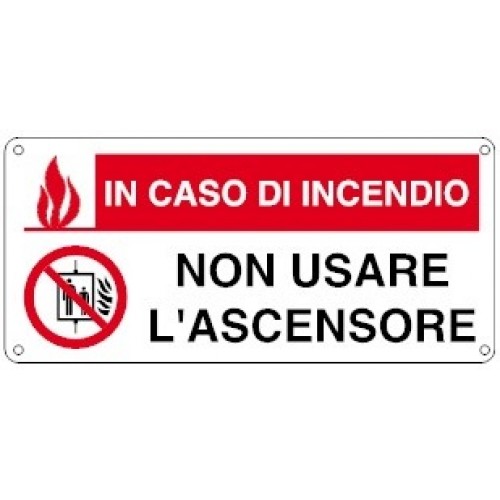 Cartello " In caso di incendio non usare l'ascensore" alluminio con supporto adesivo mm. 220x100-EEF16133W